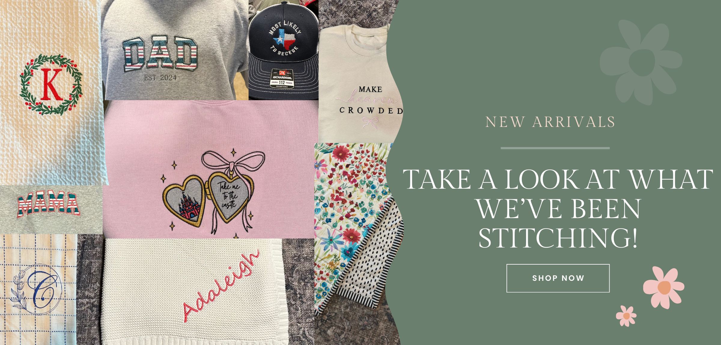 We create custom embroidered caps, sweatshirts, shirts, pillowcases, aprons, company logo pieces, and more. Offering endless ways to personalize what matters to you.
